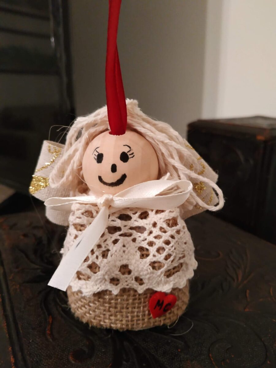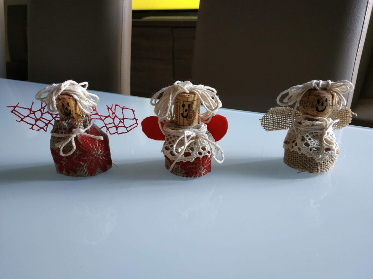 Ho portato tutte le mie cose per i lavoretti che mi piace tanto fare, scatole piene di colori cartoncini colorati, gomitoli di lana, bastoncini di legno e tanto altro, qualcosa inventerò, in quel periodo ho inventato un angioletto con cartoncino ed il tappo di sughero delle bottiglie di spumante, rivestito di nastri e con le ali di stoffa.