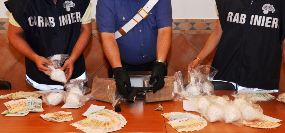 Ieri pomeriggio, i Carabinieri lo hanno intercettato all’esterno del garage e sono intervenuti per un controllo approfondito, al seguito del quale hanno rinvenuto 4,5 chili di cocaina, in parte già divisa in dosi e in parte divisa in due confezioni pressate, una pistola modello Beretta calibro 9, risultata denunciata rubata nel 2005, alcune decine di proiettili calibro 9 custoditi in un borsello, 1.550 euro in contanti, divisi per taglio di banconote, provento dell’attività illecita, oltre che a sostanza utilizzata per il taglio della cocaina, strumenti e materiale per il confezionamento della droga; a completare la dotazione tecnologica dell’arrestato, una pressa idraulica.