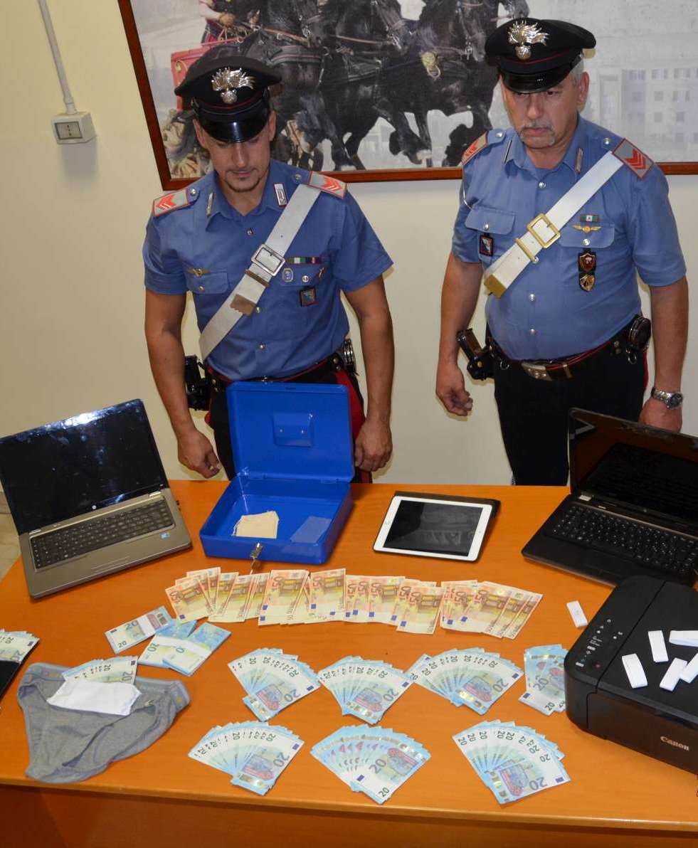 In casa, i Carabinieri hanno inoltre trovato e sequestrato un pc e una stampante ad alta definizione su cui sono in corso accertamenti.