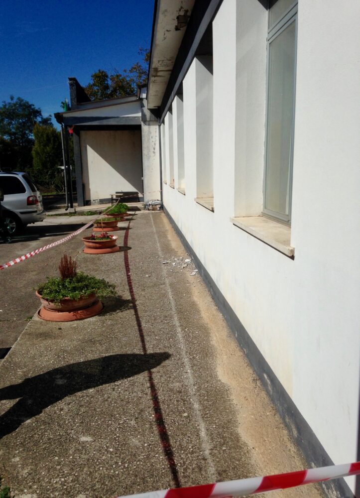 Considerando che il progetto, della copertura di una parte della scuola, è stato programmato due anni fa, ma eseguito solo adesso, vorremmo sperare che non debbano passare altri due anni prima di rifare la copertura completa della zona interessata e per il momento mettere solo la cosiddetta “pezza”.