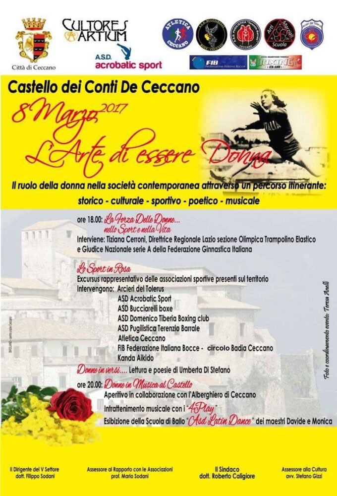 Interviene Tiziana Cerroni, direttrice regionale Lazio sezione Olimpica trampolino elastico e giudice nazionale serie A della Federazione Ginnastica Italiana. A seguire “lo sport in rosa” excursus rappresentativo delle associazioni sportive presenti …sul territorio, intervengono: Arcieri del Tolerus, ASD Acrobatic Sport, ASD Bucciarelli Boxe, ASD Domenico Tiberia Boxing Club, ASD Pugilistica Terenzio Barrale, Atletica Ceccano, FIB Federazione Italiana Bocce, Kanda Aikido.