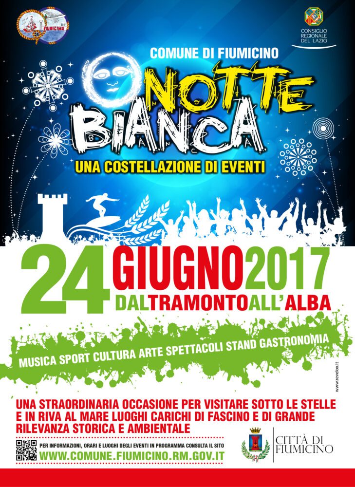 “La Notte Bianca di Fiumicino è diventato con il tempo un appuntamento da non perdere – dichiara il sindaco di Fiumicino Esterino Montino. – è ormai impossibile fare un elenco dettagliato delle tantissime iniziative in programma disseminate nelle nostre località e in continuo aggiornamento sul nostro sito istituzionale. Eventi per tutti i gusti che rappresentano una straordinaria occasione per cittadini e turisti di conoscere il nostro patrimonio storico, archeologico e ambientale, ma soprattutto per divertirsi e trascorrere in compagnia una bella serata di inizio estate. Voglio ringraziare anche quest’anno il tessuto commerciale, imprenditoriale, associazionistico, le Proloco e tutti coloro che hanno partecipato attivamente all’organizzazione della Notte Bianca. Sono certo che anche romani e cittadini dei Comuni limitrofi, come già accaduto nelle altre occasioni, torneranno a trovarci numerosi per trascorrere qualche ora sul nostro territorio”.