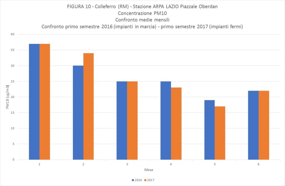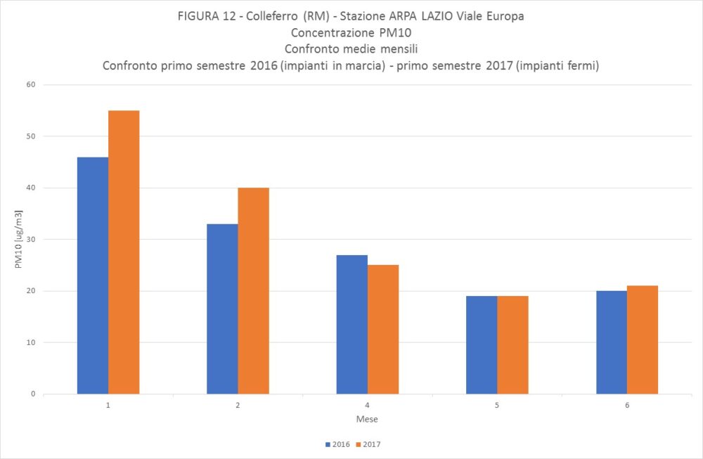 L’analisi dei dati emersi porta a concludere che, con riferimento ai periodi oggetto di indagine, non vi è alcuna correlazione diretta tra i dati di qualità dell’aria rilevati dalle due stazioni (che nei due differenti periodi sono rimasti praticamente invariati) e lo stato di funzionamento degli impianti. A tale scopo possono essere indicative le tabelle allegate, relative alla concentrazione di PM10, nei due periodi analizzati. Le stesse rispondenze si hanno per le altre componenti analizzate: monossido di carbonio, ossidi di azoto e ozono”.