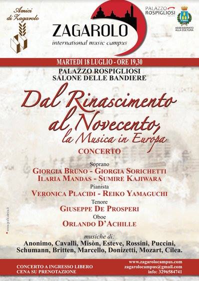 A Zagarolo arriva la grande musica. Martedì 18 luglio, alle ore 19:30, presso Palazzo Rospigliosi, salone delle bandiere, l’associazione Amici di Zagarolo e l’assessorato alla cultura del comune di Zagarolo, ha organizzato un grande concerto dal “Dal Rinascimento al Novecento, la musica in Europa“.