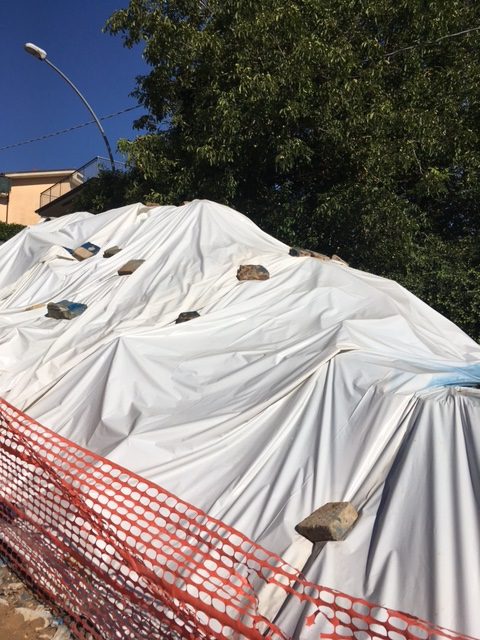 Il direttore dei lavori ha provveduto tempestivamente ad effettuare il fermo del cantiere ed a comunicare il rinvenimento al Geometra incaricato dal Consorzio (proprietario e manutentore delle strade è il Consorzio Colle Spina).