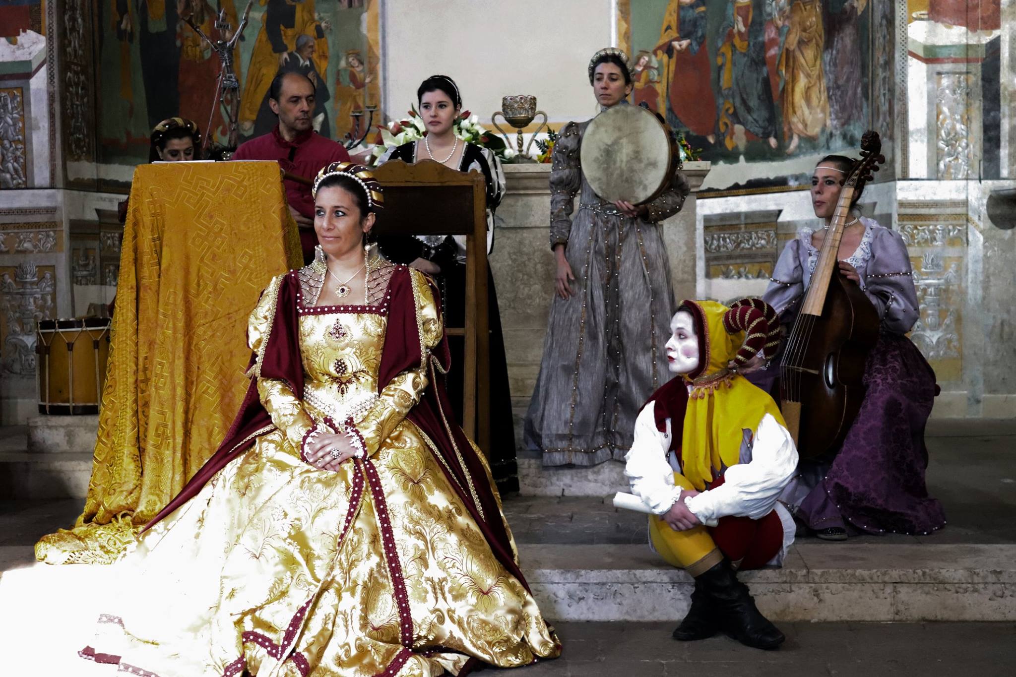 Lo spettacolo viene arricchito inoltre dalla presenza di un giullare di corte e di una gentildonna che recita alcune poesie di noti scrittori dell’epoca.
