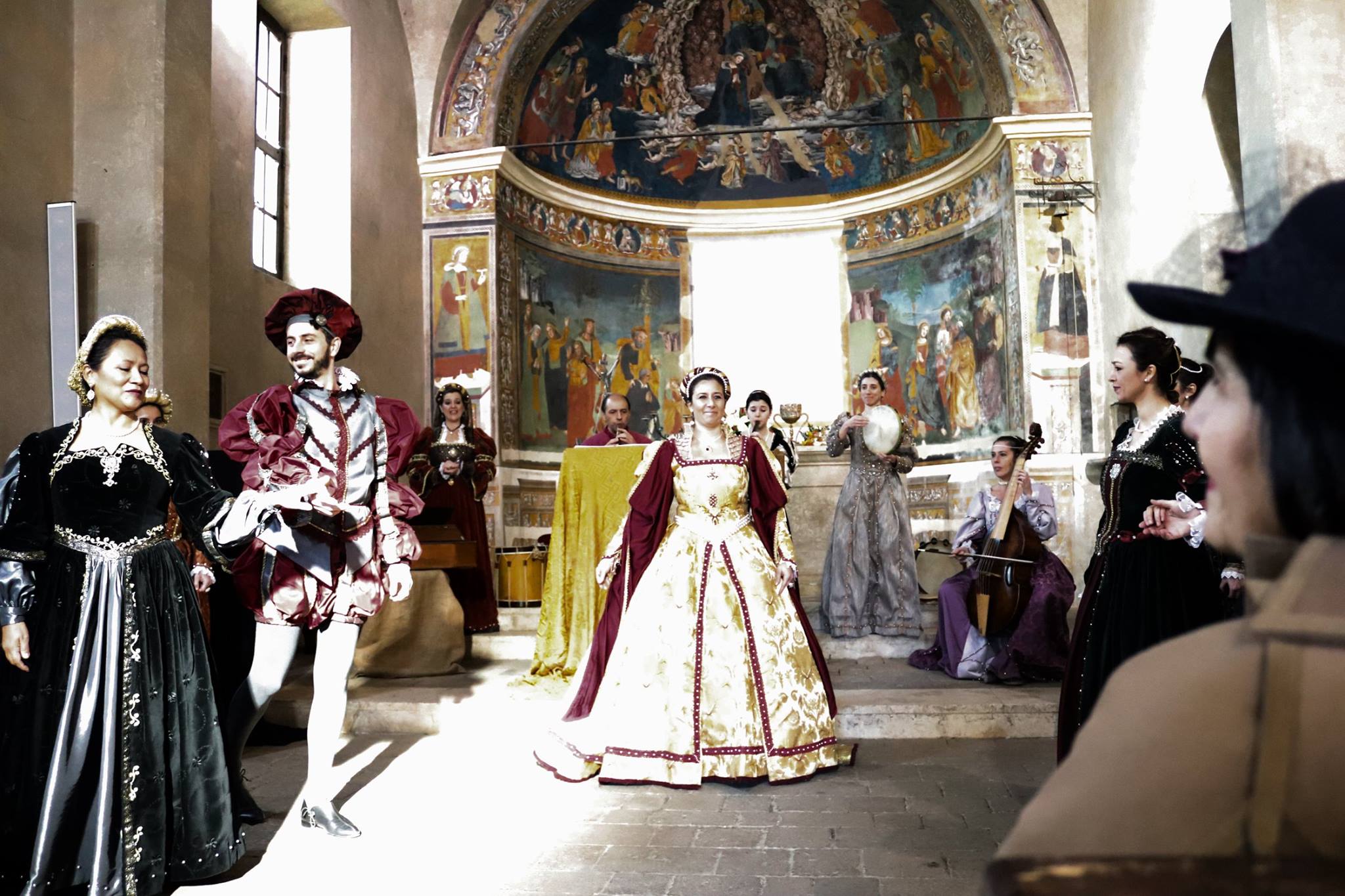 Con lo spettacolo “Chi Vuol Esser Lieto sia…” – Un magico viaggio nel Rinascimento tra musiche, canti, danze di corte e sapori antichi – che sarà presentato a Giulianello, nell’antica chiesa di San Giovanni Battista, domenica 7 gennaio 2018, con inizio alle 18:30, la Compagnia presenterà la rievocazione storica de “L’Arte del Ballare ò de i Balletti” del M° Fabritio Caroso da Sermoneta (1526-1605), uno spettacolo di danze e musiche del Rinascimento italiano, danze riprese e ricostruite fedelmente dai trattati del noto maestro sermonetano, “Il Ballarino” del 1581 e “Nobiltà di Dame” del 1600.