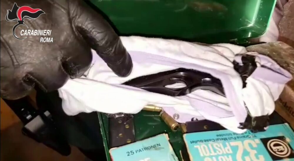 Nel corso delle ispezioni della scorsa notte, scattati in particolare nel quartiere di Ostia Nuova, i Carabinieri di Ostia hanno rinvenuto due pistole – con il relativo munizionamento – e due reperti archeologici di epoca etrusca/romana. In particolare le armi, un  revolver “Colt” e una pistola semiautomatica “Beretta” cal. 7.65, sono state rinvenute avvolte in strofinacci di tela e nascoste nel sottoscala di un condominio di piazza Lorenzo Gasparri, la cui porta è stata aperta dai Carabinieri – pronte all’uso – con tre caricatori e un centinaio di proiettili. Nello stesso condominio, nascoste in una nicchia del vano ascensore, sono state scoperte alcune dosi di cocaina e un bilancino di precisione.