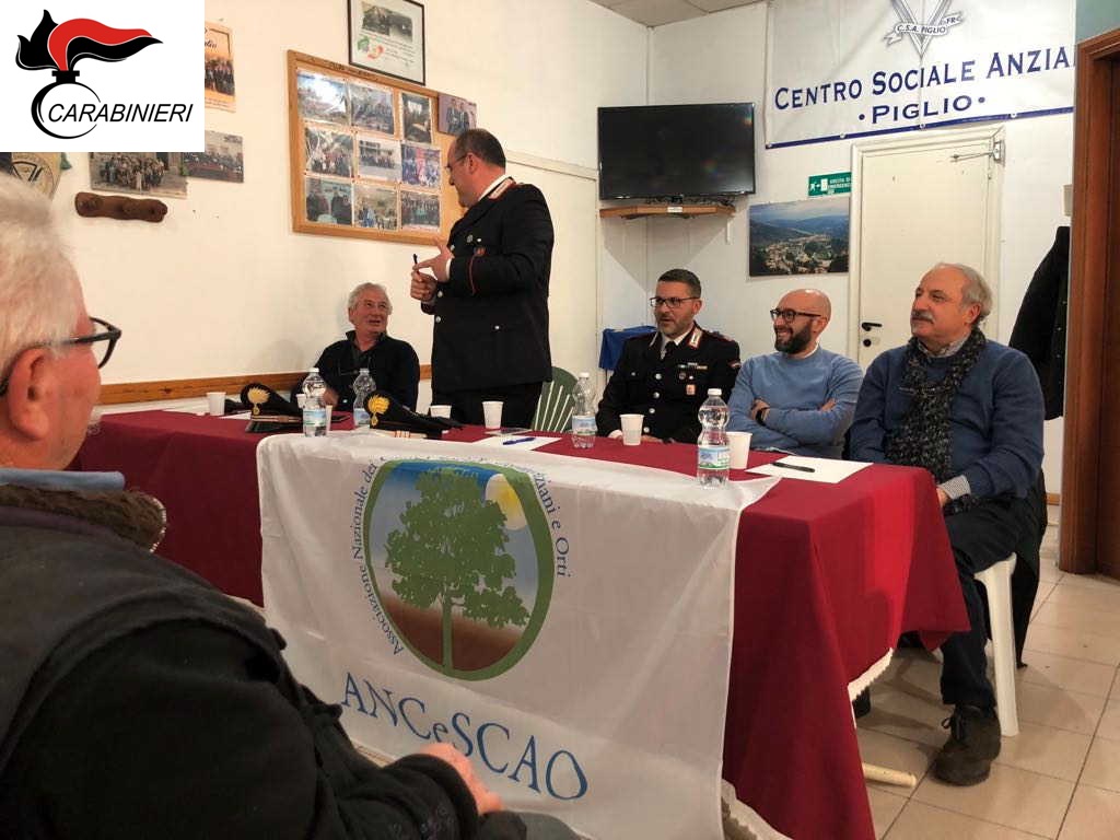 Nel pomeriggio di ieri, presso il Centro Sociale di Piglio, si è svolto il convegno informativo nell’ambito del progetto di informazione ai cittadini promosso dal Comando Provinciale Carabinieri e dal Coordinamento Provinciale “ANCeSCAO”, avente come oggetto “Truffe agli anziani. Come difendersi”.