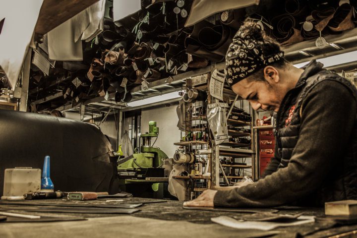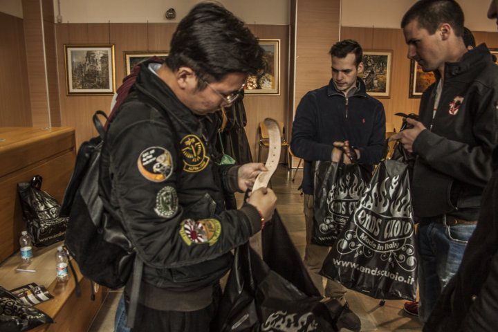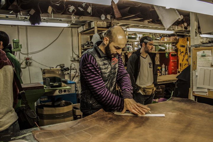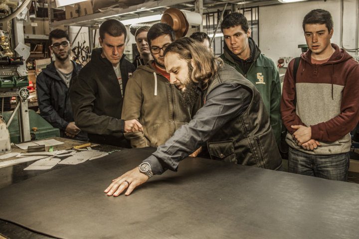 Inizialmente hanno visitato il punto vendita ed il laboratorio, nel quale gli è stato illustrato tutto il processo di produzione delle borse: dal disegno, al taglio, all’assemblamento.