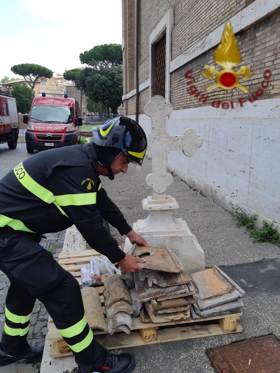 Proseguono senza sosta le attività dei Vigili del Fuoco del Comando di Roma relative alla messa in sicurezza della Chiesa San Giuseppe dei Falegnami presso via San Pietro in carcere, dopo il crollo che ha coinvolto il tetto della struttura. Sul posto sono operative due squadre del Comando, con il supporto del nucleo SAF carro crolli e autoscala.